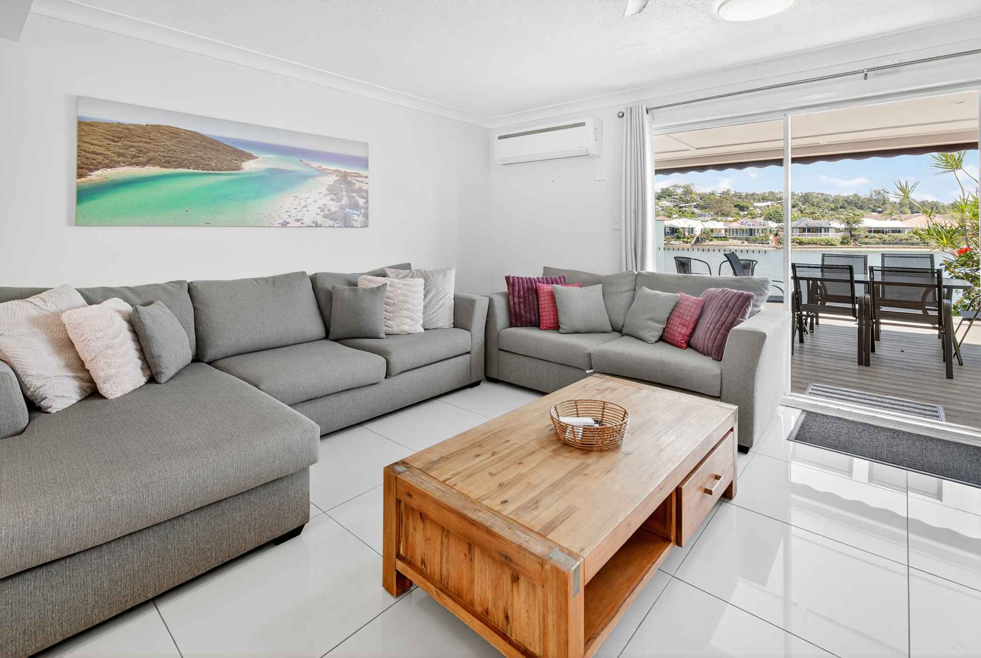 3 bedroom deluxe waterfront townhouse features 1 Queen bed and 4 single beds or 2 Queen beds and 4 single beds for up to 6 guests