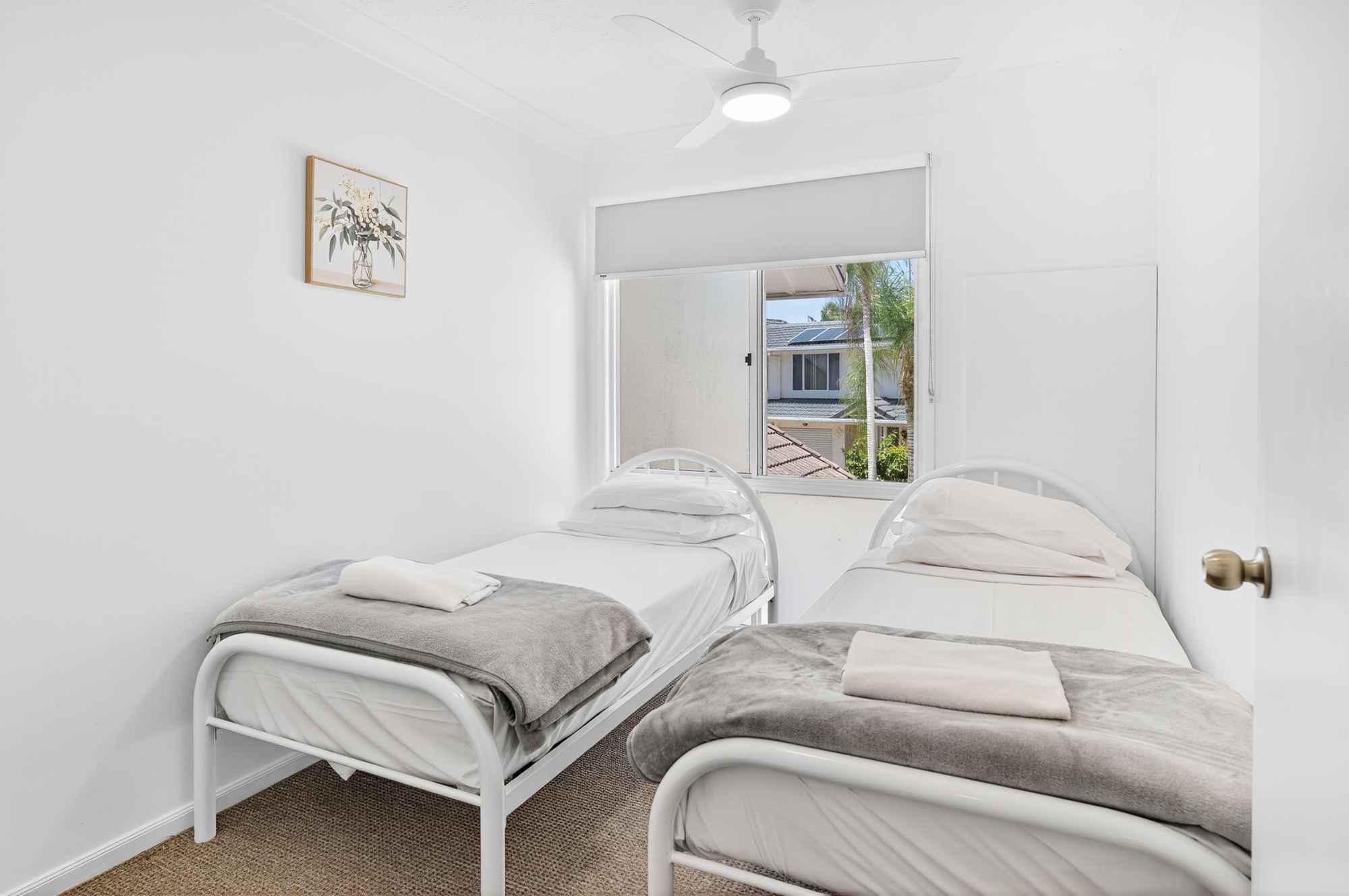 2 bedroom garden townhouses feature 1 Queen bed and 2 single beds for up to 4 guests