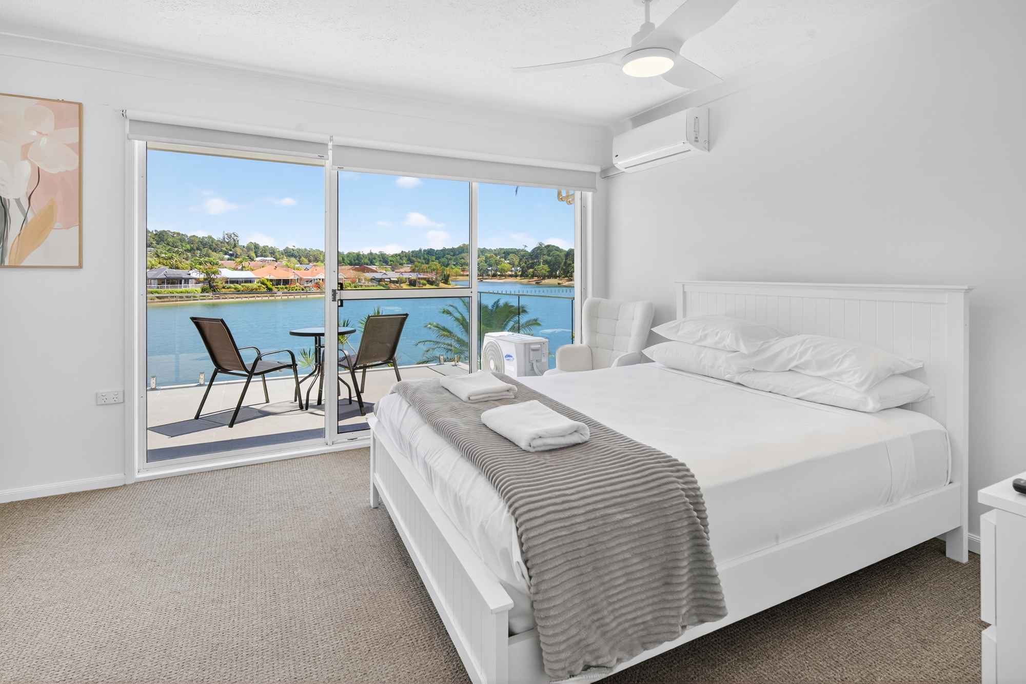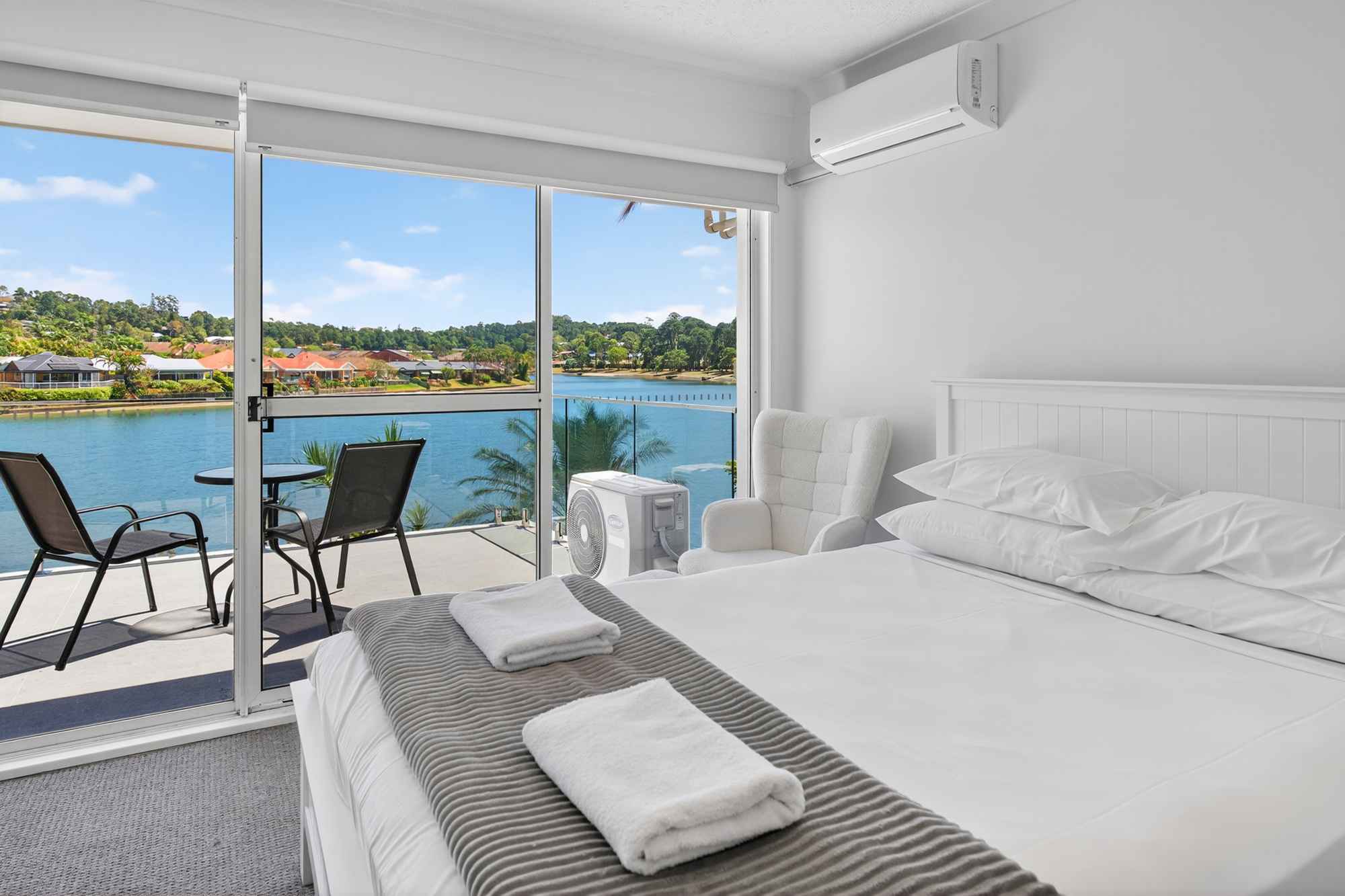 2 bedroom waterfront townhouses feature 1 Queen bed and 2 single beds for up to 4 guests
